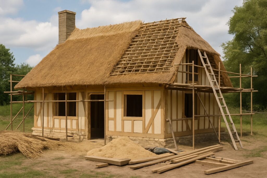 - Respecter les matériaux d’origine : utiliser le même type de chaume, réparer la charpente avec des bois compatibles.